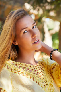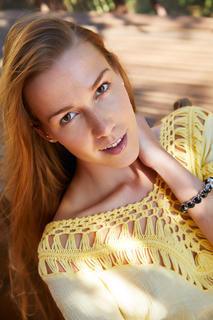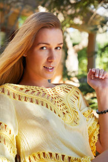 Supermodel sexy in a short yellow dress that leaves her long tanned legs bare, gorgeous Alexis Crystal relaxes in the shade of the patio. The energetic Czech cutie can't keep still for long though, a naughty smile on her face as she lets her dress slip down to show her perky breasts. Confident she has your undivided attention, she starts to stroke her hot pussy, the moist pink folds spreading open to her touch. This freckled babe is a natural pleasure-seeker, and proud of it.